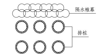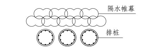 分离式排桩是工程中灌注桩排桩围护墙最常用,也是较简单的围护结构形式。灌注桩排桩外侧可结合工程的地下水控制要求设置相应的隔水帷幕。