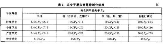农业干旱灾害等级划分标准