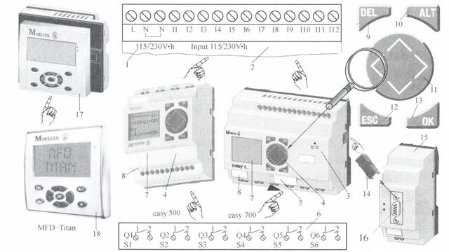 easy500/700/800系列和MFD-Titan多功能显示器具有数学运箅、逻辑控制、定时和计数、定时开关、PID控制、操作员和显示、高速计数、频率测量和高速增量式编码器处理、数据存储、通信连网等功能。