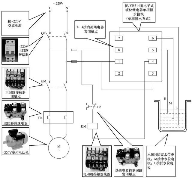 JYB714型电子式液位继电器排水方式220V单向电动机自动控制线路