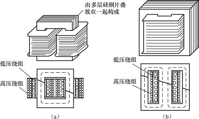 变压器是由绕组绕制在铁芯上构成的,对于不同形状的铁芯,绕组的绕制方法有所不同,下图所示是几种绕组在铁芯上的绕制方式。