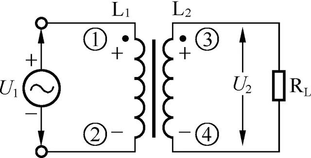 交流电压U1加到变压器的一次绕组L1两端,在二次绕组L2两端会感应出电压U2,并送给负载RL。假设U1的极性是上正下负,L1两端的电压也为①正②负(即上正下负),L2两端感应出来的电压有两种可能:一是③正④负,二是③负④正。