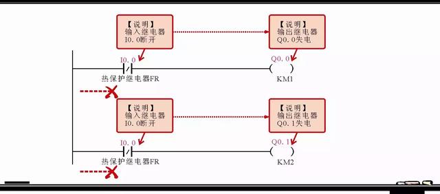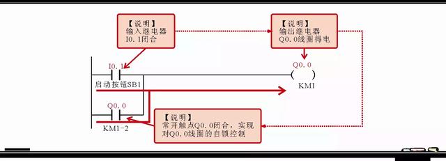 例如,要求起动按钮SB1控制电动机M起动,停止按钮SB2控制电动机M停止,电动机M起动与停止受接触器KM1控制,编写该控制过程梯形图。