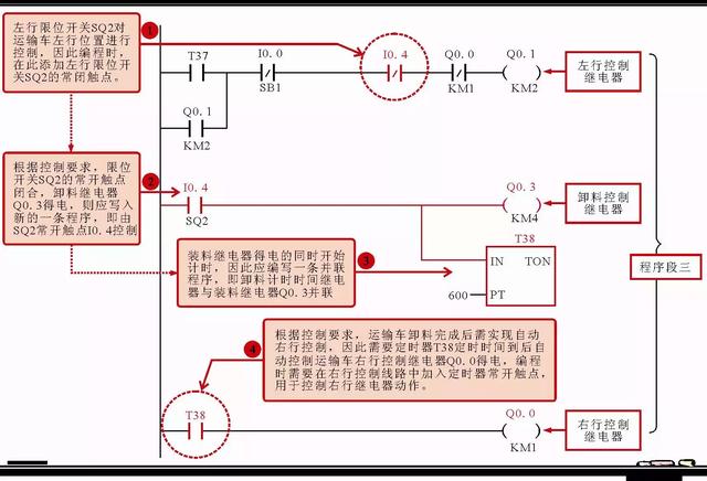 3)60s卸料及自动返回(右行)控制过程的西门子PLC梯形图