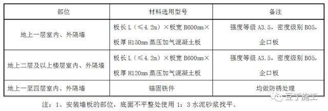 蒸压加气混凝土板轻质隔墙施工。本工程主要构件材料见下表