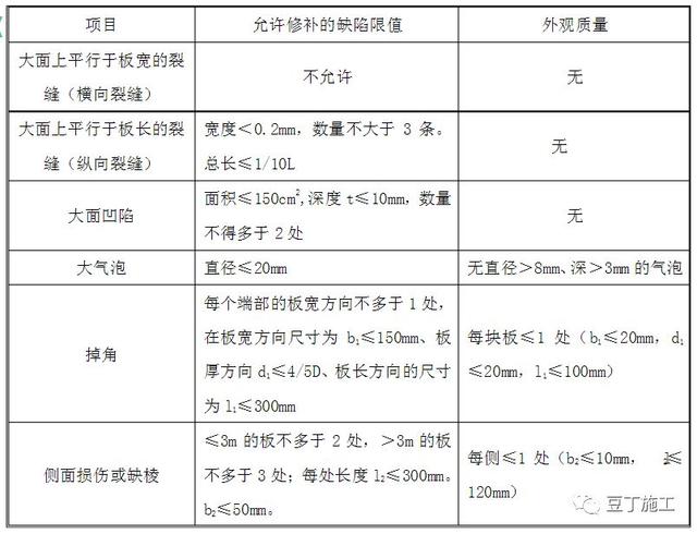 蒸压加气混凝土板外观缺陷限值和外观质量