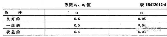 c1、c2-根据清孔情况、岩石破碎程度等因素而定的系数,按表1b413012-4采用.