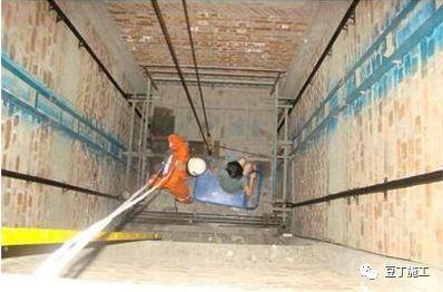 1、为了便于对结构渗漏点的查找和附加防水层的重新施工,应在防水堵漏施工前对电梯井内墙水泥砂浆粉刷层和原防水材料(若有内防水层)进行有效的铲除。