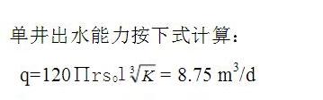 式中:q单井出水能力(m3/d) r0 过滤管半径=0.025m l 滤管进水部分长度=2m