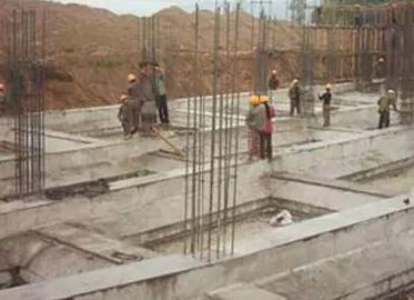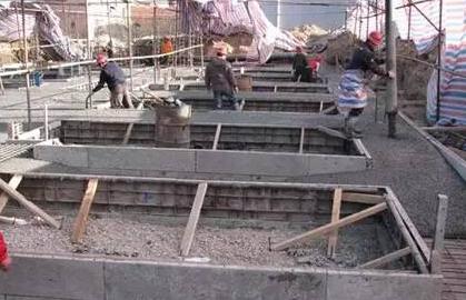 6) 基础梁混凝土浇筑时,沿着建筑物的纵向进行。采用分层浇灌分层振捣浇筑方法。