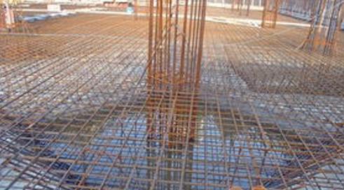 筏板钢筋绑扎、模板安装:按设计图纸要求绑扎基础底板和梁钢筋,并插好墙、柱及其他预留钢筋,然后安装梁、柱、墙侧模。