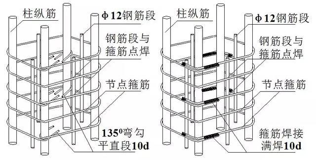 5、柱核心区箍筋:加工焊接成如图所示钢筋笼,梁钢筋绑扎完成时一同下沉到预定位置