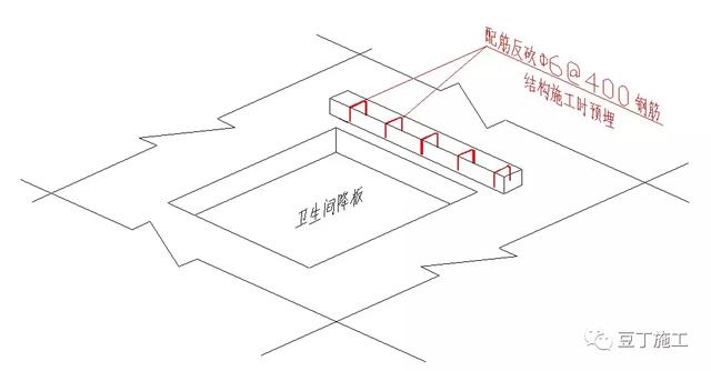 20、厨卫间反砍采用配筋混凝土,6@400的U型箍筋,与钢筋同时绑扎安装。