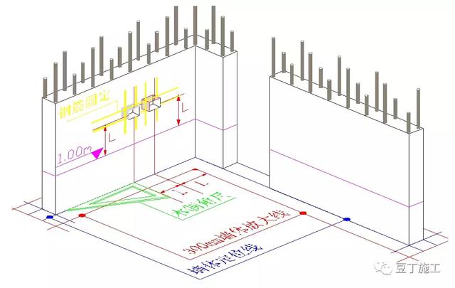 3、距离浇筑板面500mm处加箍筋,固定柱主筋偏位