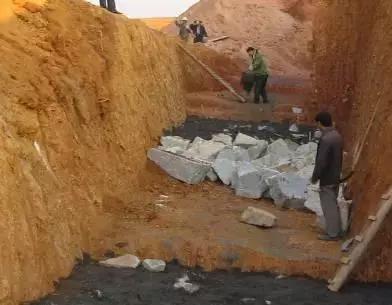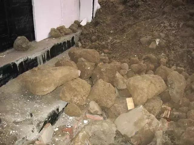 石块、垃圾及杂物等破坏周边成品, 如防水层、地下管道等