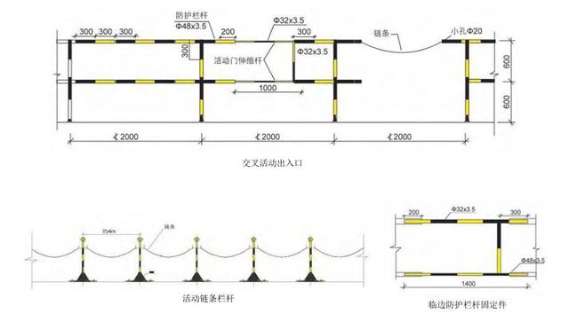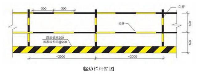 (1)、防护栏杆由上下两道横杆及栏杆柱组成。上杆离地面高度为 1.2m,下杆离地面高度为 0.6m,横杆长度大于 2m时,必须设置栏杆柱。