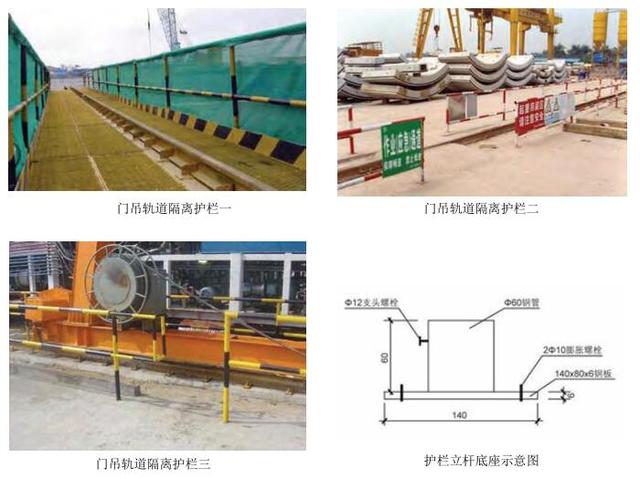 (1)、应在门式起重机轨道两侧安装隔离栏杆。隔离栏杆和门式起重机的距离为 0.5m 以上,隔离栏杆必须延伸到轨道的终端并作封闭。