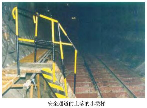 人行通道两端必须设置上下小梯,小梯用角铁和花纹钢板组成,并设有扶手栏杆。上下小梯必须和电机车轨道保持安全距离。
