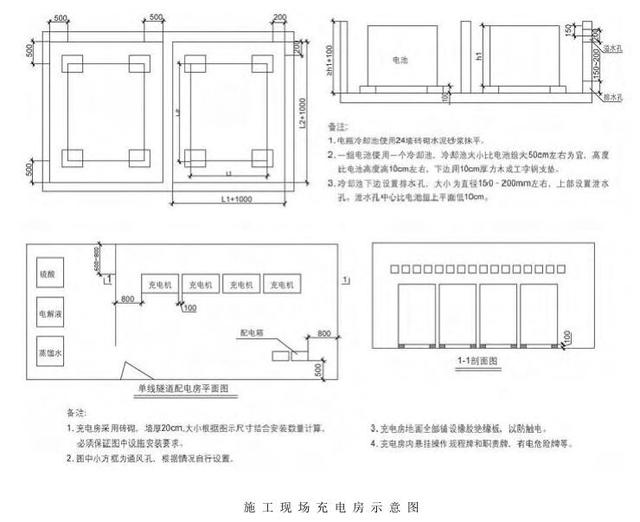 盾构施工现场应修建充电房,充电房采用砖块砌墙,大小根据项目使用设备情况而定、应保证其有足够的活动空间、通风良好。