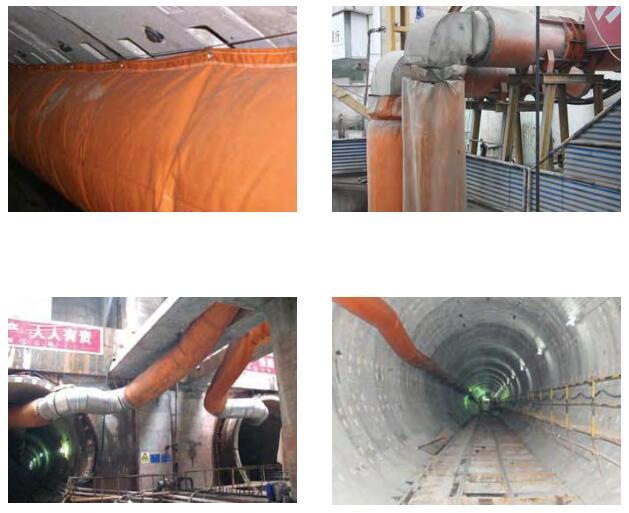 (2)、.通风管布设要求。通风管吊挂平直、拉紧吊稳、接头严密。避免出现褶皱,垂直交接处要避免死弯。风管末端到工作面的距离保持在 10m~15rn 内,以确保通风效果。通风管安装接头应严密,减少漏风损失,转弯半径不小于风管直径的 3 倍。在台车门架适当位置安装同直径刚性风筒连接,按施工要求设闸阀及三通接头备用。
