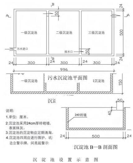 施工现场沉淀池一般采用砖砌而成,也可以用砼浇注。容量按施工生产排放废水多少确定,池的长宽比一般不小于 4,池的有效水深一般,1.5~2 米。同时应有防止泥浆、污物堵塞排水管道预防措施,并应进行定期清理。