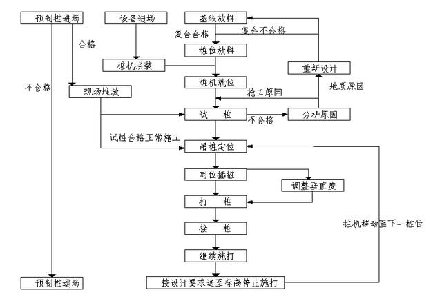 沉桩时要严格按有关标准做好每米油压表读数(贯入度)、入土深度、等原始记录,插桩时一定要让桩头对准样桩,然后用两台经纬仪交叉成90,架在能看清桩的全长的地方。用经纬仪观测桩的垂直度,保证垂直度在5以内,并有专人指挥桩机进行反复多次调整,尤其是压桩第一个行程和打桩初期时严格保证其垂直度,确保其垂直导向作用。开始沉桩应观察桩身、桩架、桩锤等垂直一致,方可转入正常施压(打)。沉桩过程中,如遇桩身倾斜、桩位位移、压桩力(贯入度)剧变、桩顶或桩身严重裂缝或破碎等异常情况, 应暂停沉桩,处置后再行施工。