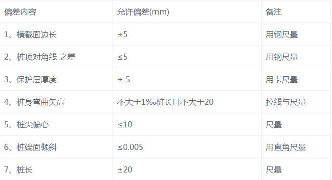 钢筋混凝土实心桩制作容许偏差(mm):