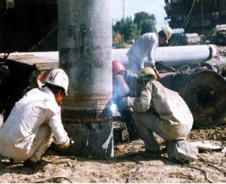 在接桩时, 下节桩的地面预留高度一般为 50-80cm。再垂直吊上第二节桩进行用电焊接桩,这样重复直到将分段各桩接上并打入地下。每根桩的压入、接长应连续,特别在粉砂层时更应如此。