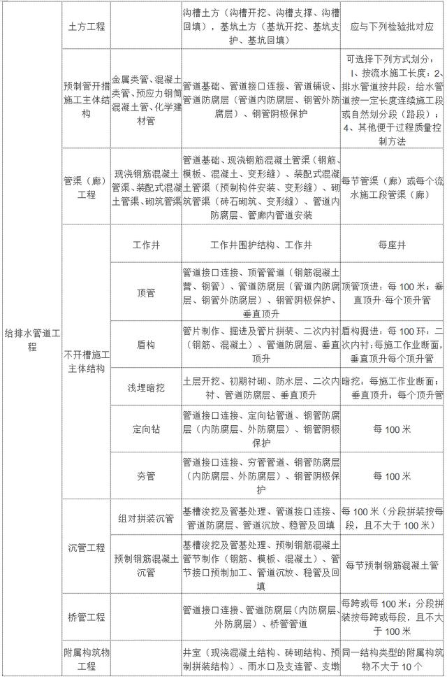 市政工程,单位工程,分项工程,检验批划分