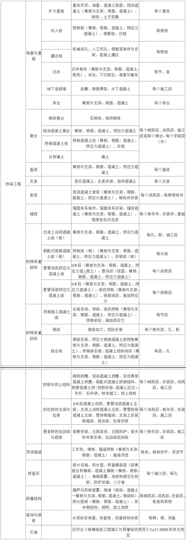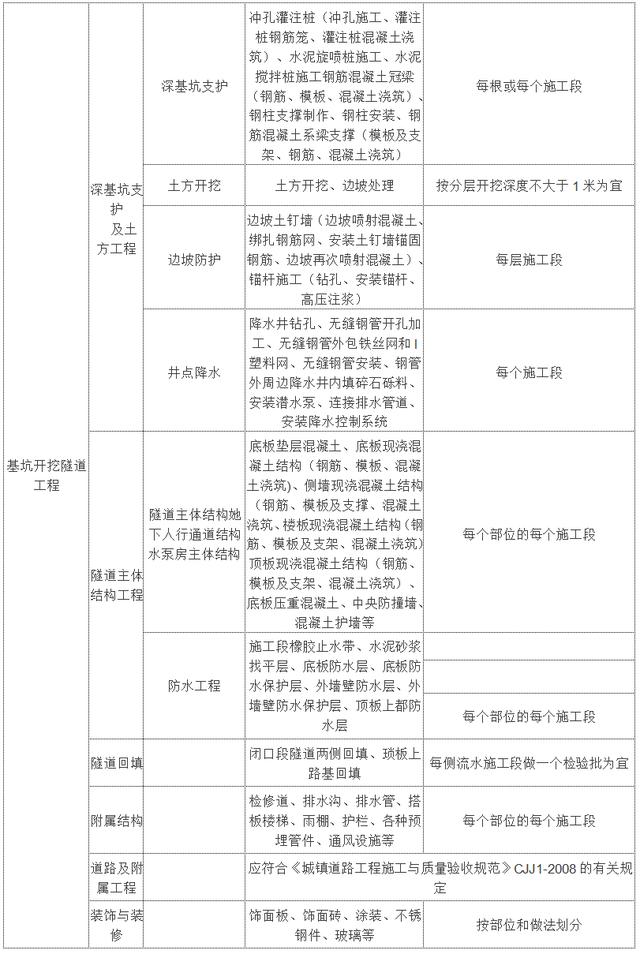 市政工程单位、分部、分项工程检验批划分