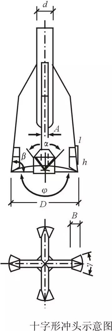 ②冲击钻头形式有十字形、工字形、人字形等,一般常用十字形冲击钻头。