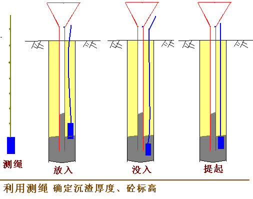 在浇注前,探测孔底泥浆沉淀厚度,如大于设计厚度,再次清孔,直到满足要求为止。