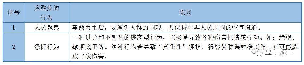 表4.10-2中毒发生时人员疏散应避免的行为因素