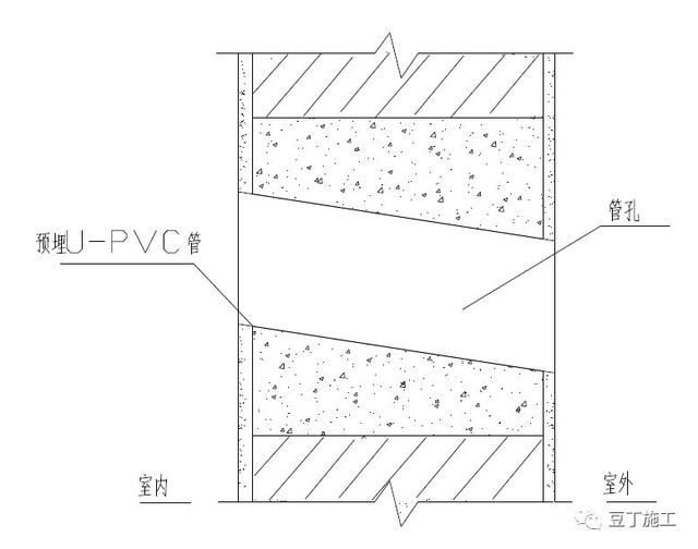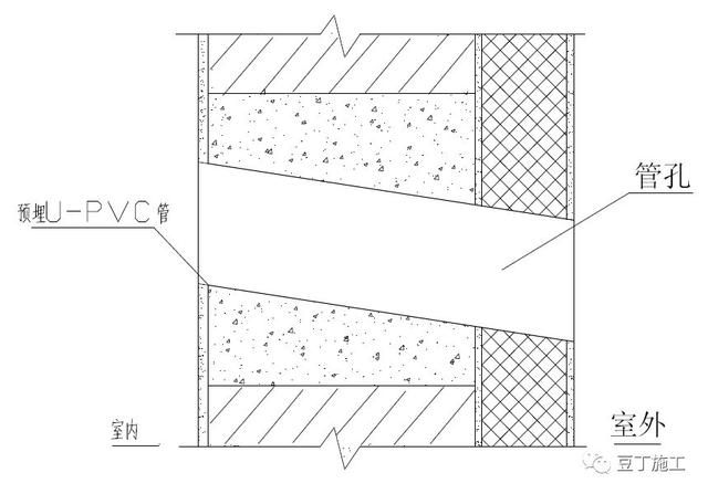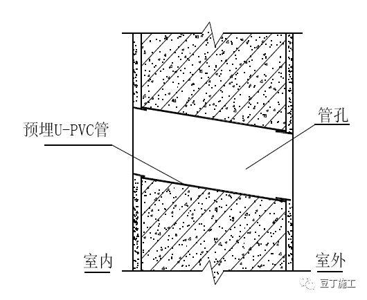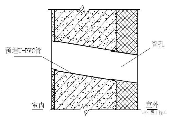 U-PVC 管或钢套管两端须与墙面相平,按内高外低的原则设置坡度,内外高差20mm。