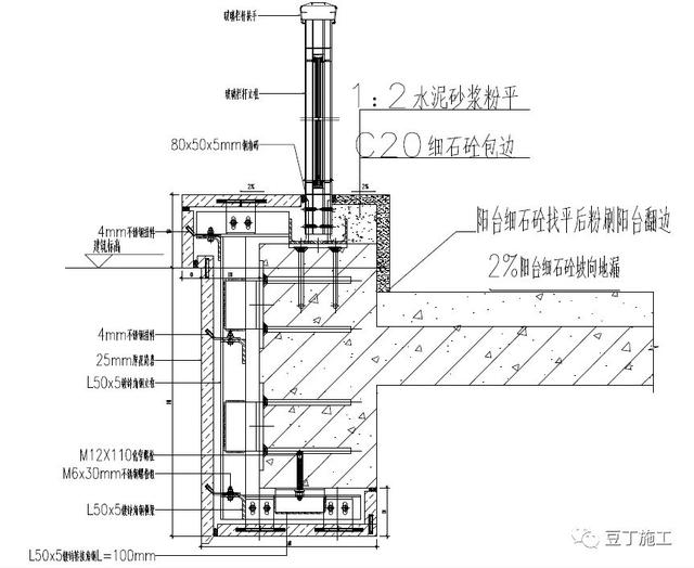 本做法适用于0.00 以上石材干挂阳台落地栏杆。