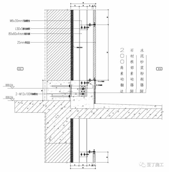 本做法适用于0.00 以上阳台干挂石材落地墙体。