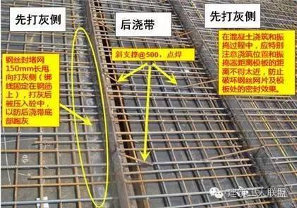 后浇带要严格按施工规范和设计要求进行施工,施工中应高度重视下列问题: