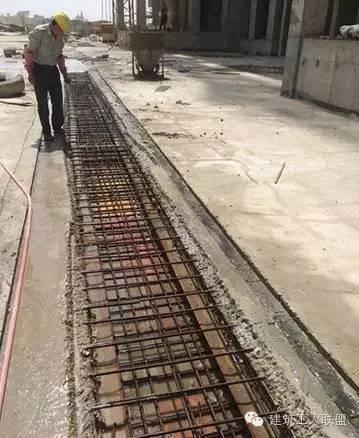 (2)梁板后浇带内的流浆和多出的砼需凿除干净并凿直,将原有的砼垃圾全部清理干净方可进入下道工序。