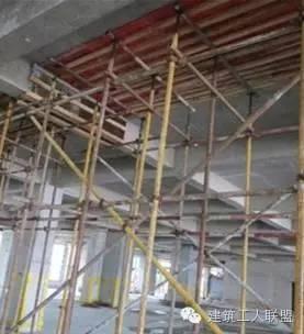 2.9混凝土浇筑28天后,下方模板与支撑方可拆除。为了避免工人误拆后浇带支撑架,架子与模板用黄黑相间颜色标记。