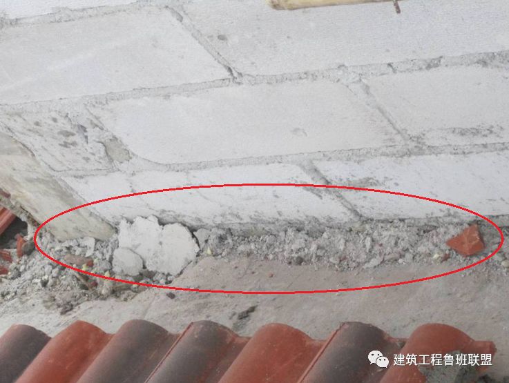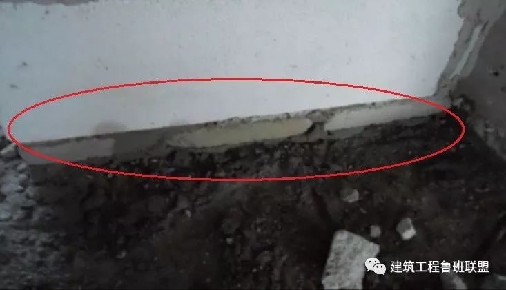产生原因:不按图纸要求施工,砌筑前未浇捣砼翻边。