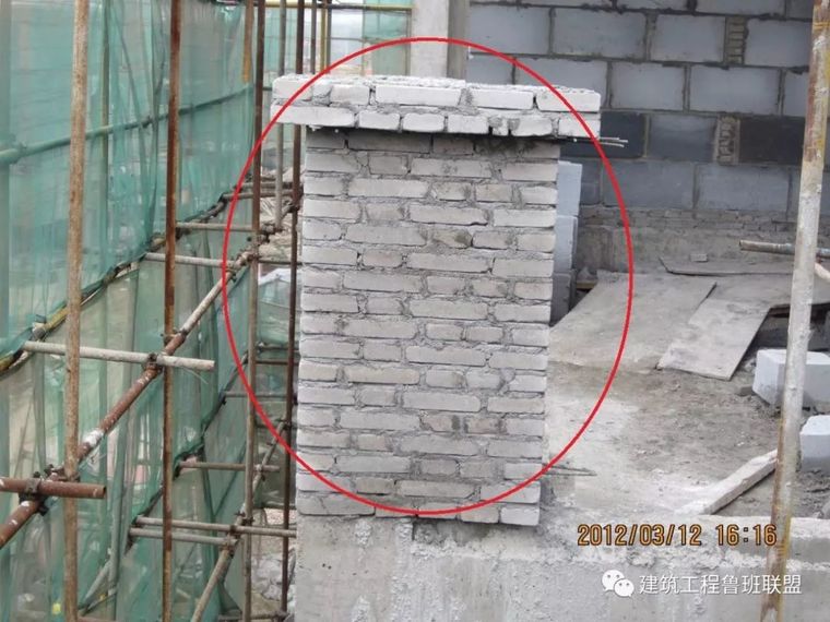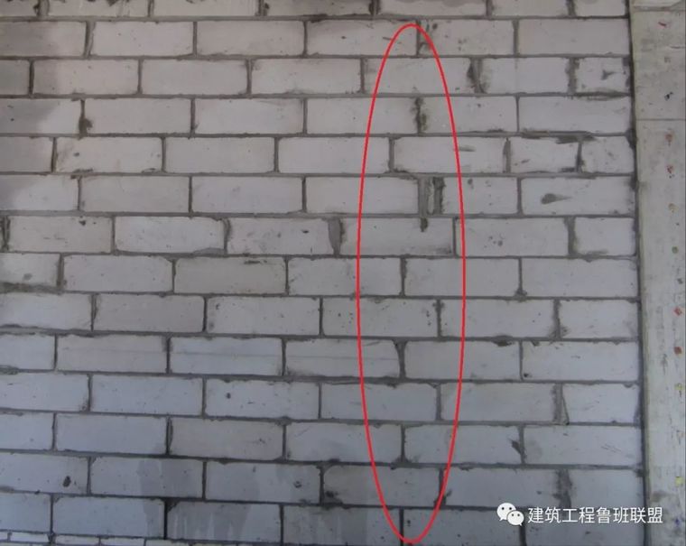 产生原因:施工单位偷工减料,贪图方便一次砌筑成型。