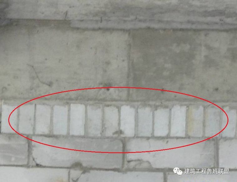 砌体顶砖的预留高度过大,导致顶砖竖砌