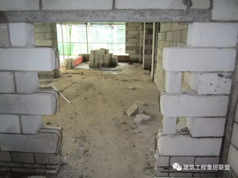 规范要求:施工洞口要求留设过梁、阳搓及拉结筋,保证施工洞口填堵后墙面的整体性、稳定性,防止抹灰层开裂。