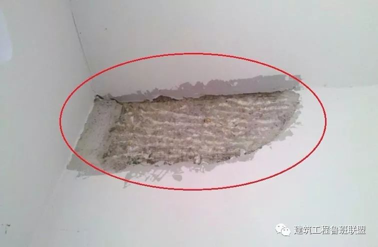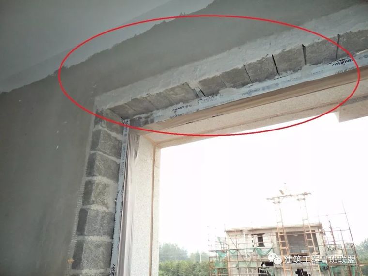 产生原因:门窗洞口未按图纸要求施工,窗框与周边墙面间隙过大,抹灰层无法压铝合金框。
