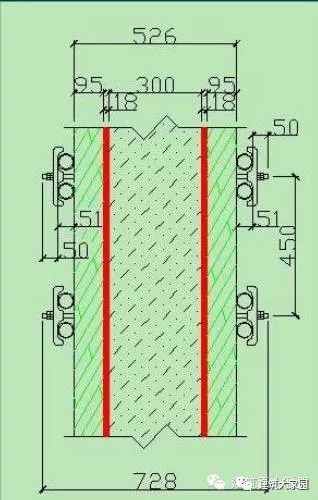 由于墙体高度较大(4.5m以上),一般方木间距取150,对拉螺栓间距取450450。