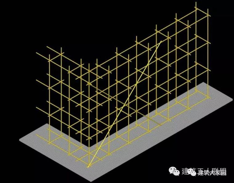 2、外立杆:双排脚手架中离开墙体一侧的立杆,或单排架立杆。