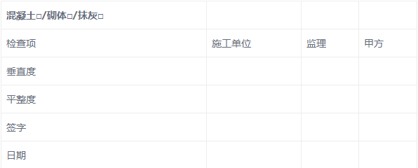 为便于现场管理,建筑工程实测实量中混凝土结构、砌体工程、抹灰工程、给排水工程、电气工程等建筑实体工程的实测实量指标 要求在现场对实测数据上墙。上墙数据应包含检查项、三方实测结果(含施工单 位、监理、甲方)、检查人员、检查日期等信息,并真实反映现场质量水平。施 工单位以户为单位 100%检查并将结果上墙,并如实填写检查时间。j监理单位应100%检查施工单位实测情况并将 20%实测实量数据记录在《质量实测合格率评估记录》上,并且监理应将实测结果上墙,并如实填写检查时间。项目管理部应 100%检查施工单位及监理的检查记录表并随机抽检 10%数据记录在《质量实测合格率评估记录》上,并将实测结果上墙。上墙表格见下表: