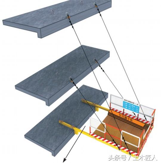 (1)楼层中预埋的钢筋锚环既可作为主挑梁的锚固环,又可作为斜拉钢丝绳吊环;