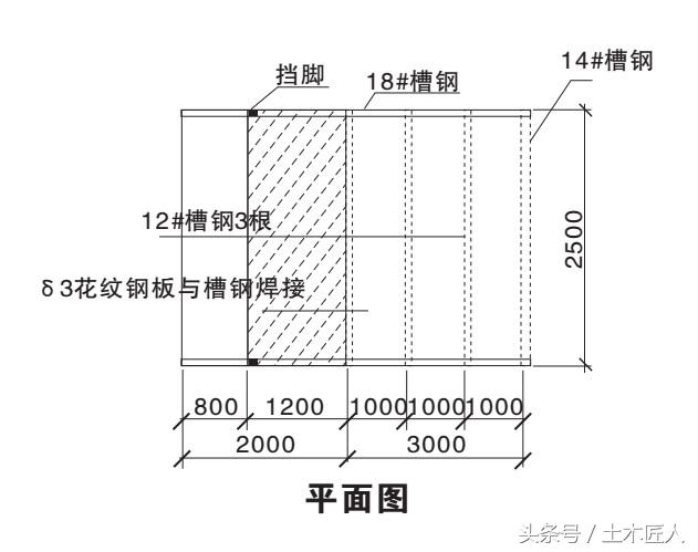 卸料平台的主框架由悬挑主梁和次梁焊接而成,悬挑主梁及次梁的型号根据施工需要选型,并在施工方案中具体体现,主梁的强度一般不得小于18号槽钢。