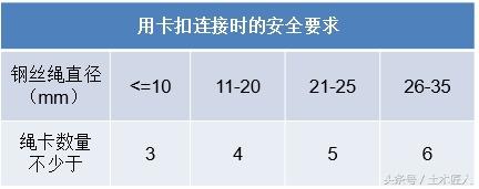 钢丝绳的型号应严格按照施工方案的要求进行选型配备,且一般不宜小于18。